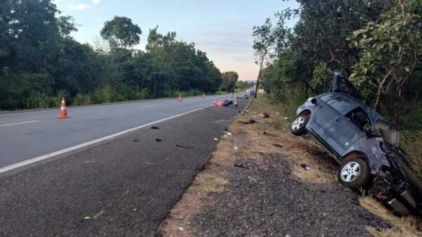 Um grave acidente na BR-153, no município de Mara Rosa, deixou uma pessoa morta e outras três feridas na madrugada desta terça-feira (27). O incidente ocorreu por volta das 4h10 no km 144 da pista, quando um veículo Volkswagen CrossFox saiu da pista e colidiu com uma árvore às margens da estrada.
