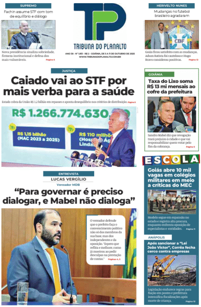 Share Facebook Twitter LinkedIn Pinterest Email CLIQUE AQUI PARA LER A EDIÇÃO IMPRESSA DA EDIÇÃO EDIÇÃO Nº 1.813 – GOIÂNIA, 05 A 11 DE OUTUBRO DE 2025 Fonte: Tribuna do Planalto